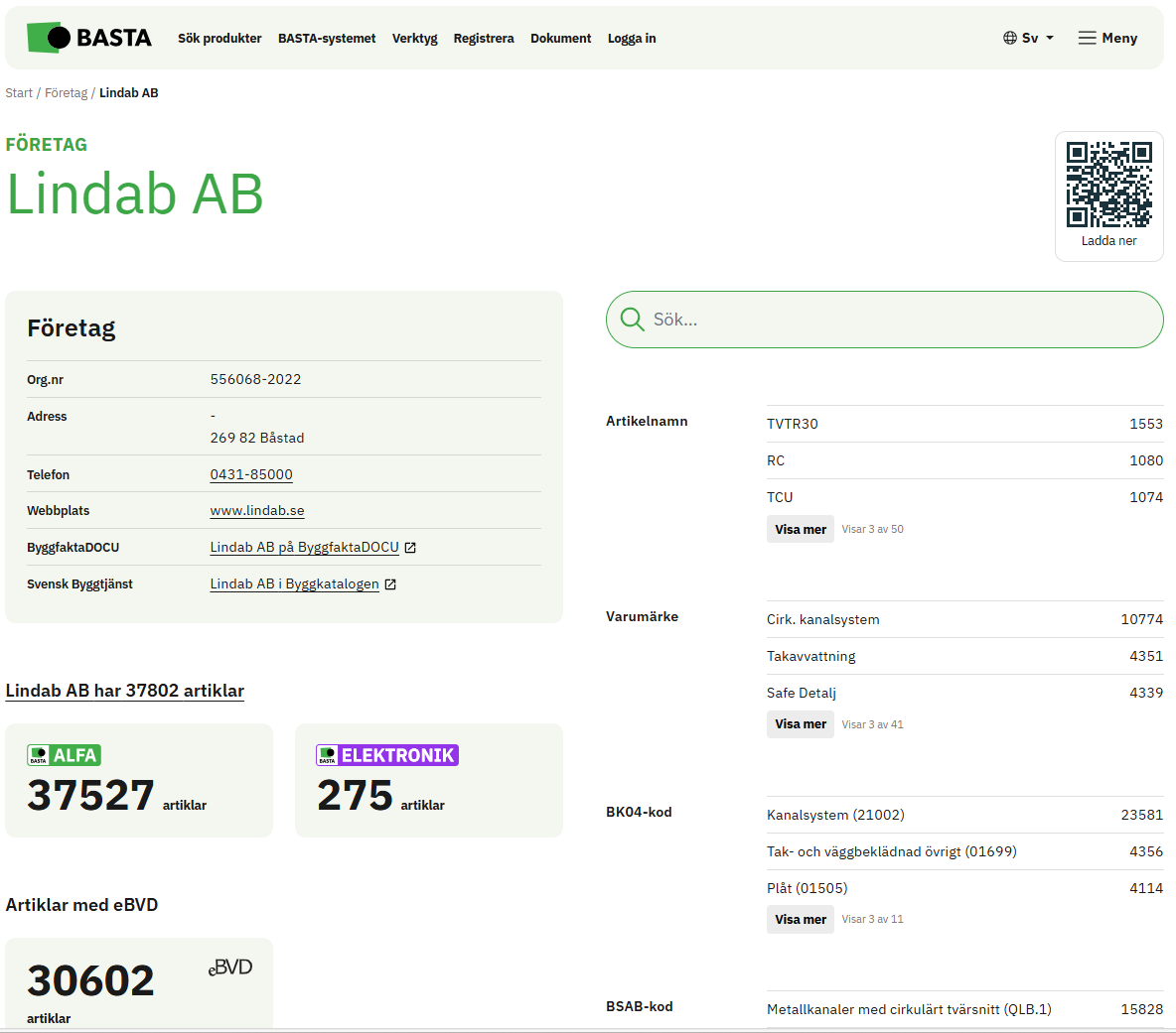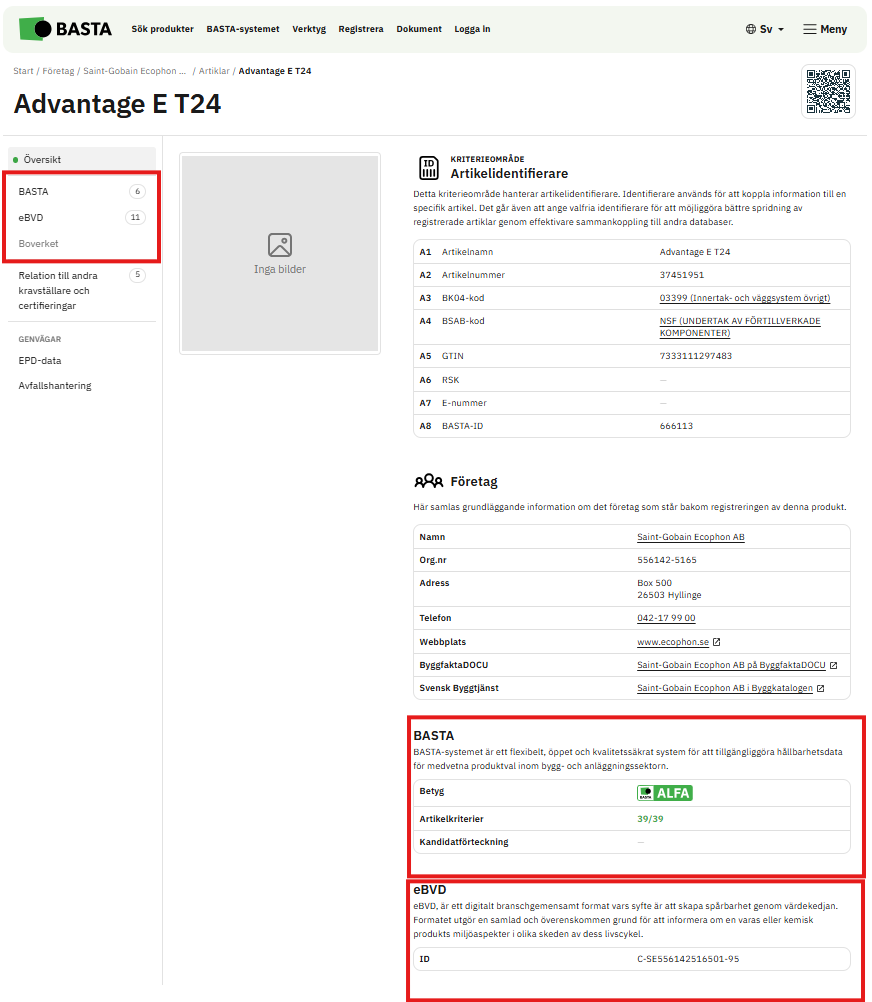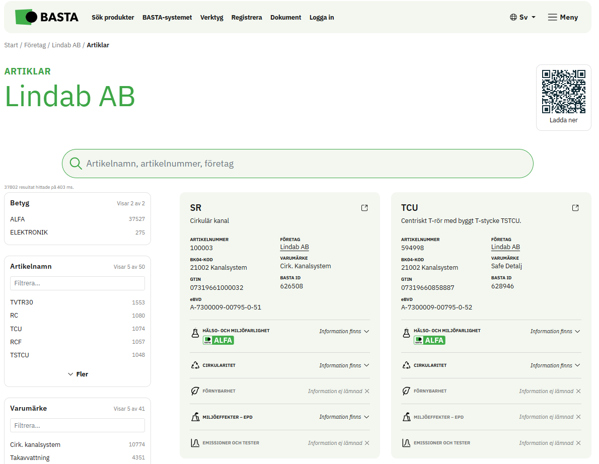 Men vi har kommit mycket längre, vi har redan byggt in och lanserat det vi kommit fram till i projektet i BASTA-systemet, här visar vi på över 50 000 artiklar hur vi kan kombinera BASTAs och eBVDs data samt visa data från Boverket.
