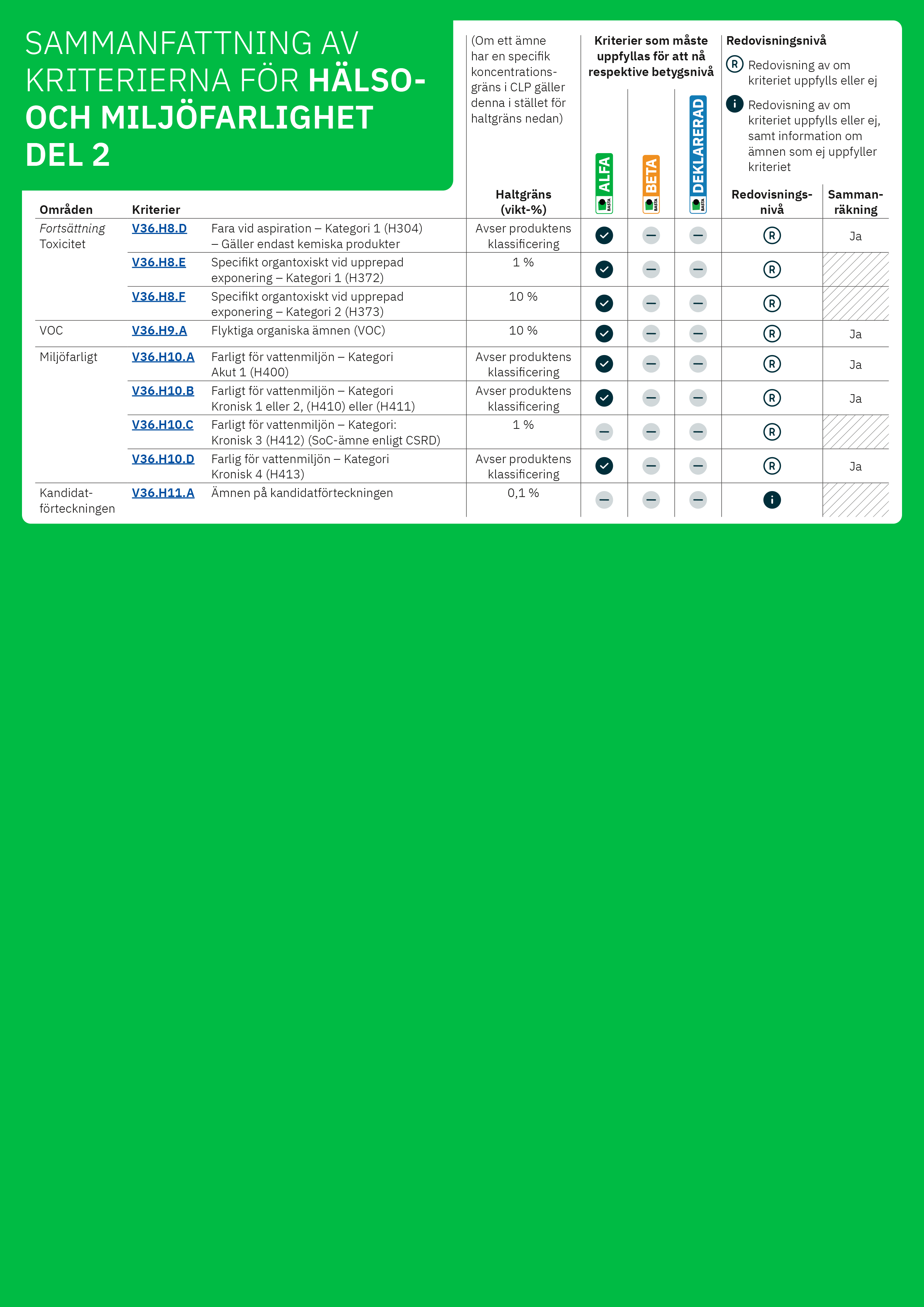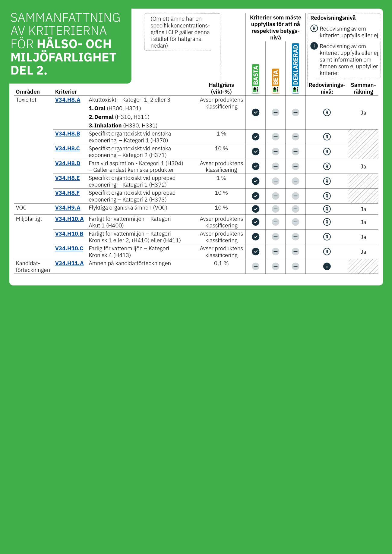 · Betygsloggor ska användas istället för BASTA-systemets logga om bedömning gjorts mot kriterierna för Hälso- och Miljöfarlighet.