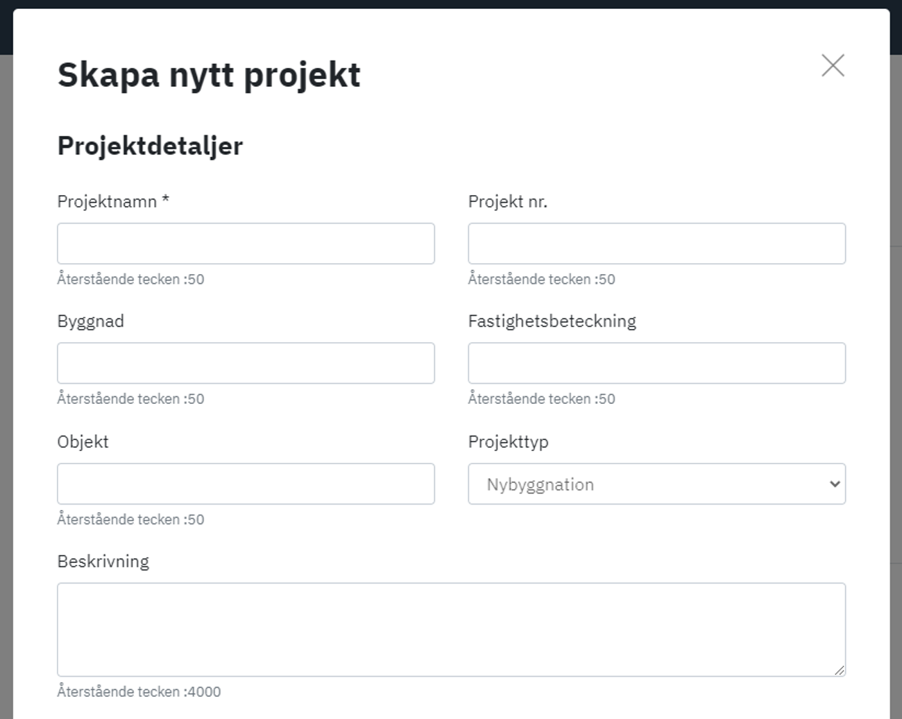 För att hålla koll på att man arbetar med rätt projekt kan man mata in grundläggande projektinformation.