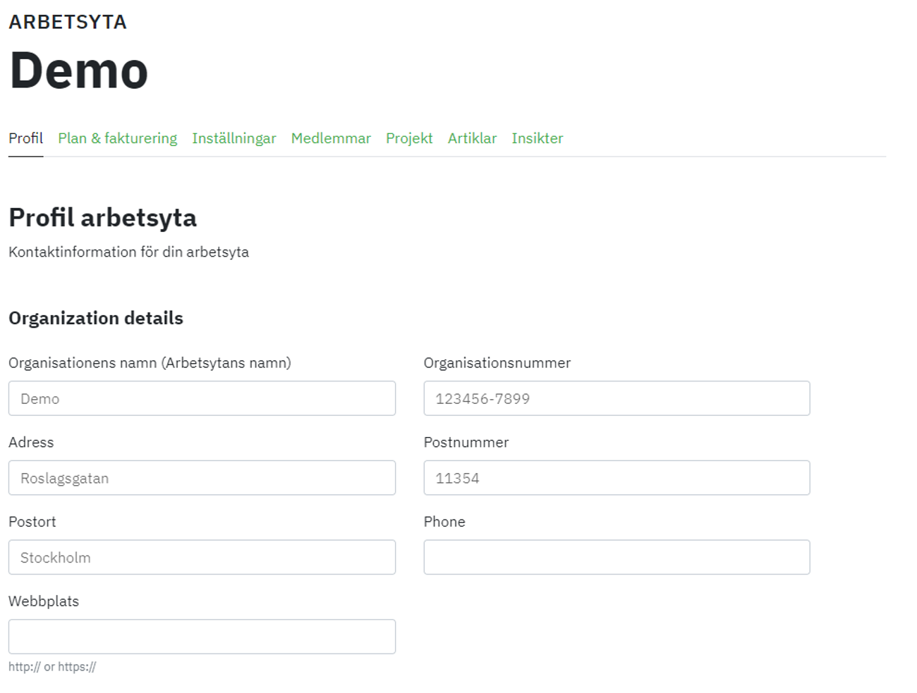 Arbetsytan är en gemensam plats, där ett företags projekt (loggböcker) och användare som har tillgång till arbetsytan administreras. Arbetsytan gör det enkelt att överblicka och administrera ett företags projekt (loggböcker).