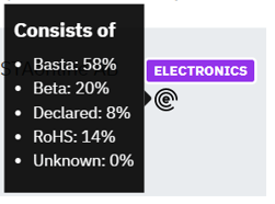 The methodology encourages reporting at the levels in the Basta-system where full knowledge of content is available, ie Basta, Beta and Declared. The RoHS and Unknown groups are therefore intended for those parts where limited information on the content is available, but where in the case of RoHS the legal requirements attached to the directive are met. The unknown part/group is used if any part of the product with incomplete content is not covered by RoHS.