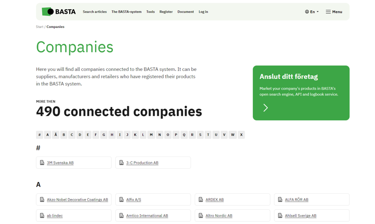 To increase the exposure of you as a joined company, we will be launching company pages. This means that each company that has joined BASTA will get its own company page, displaying all their registered articles. It will also mean you can showcase all your registered articles to customers and others interested parties by linking to your company page in the BASTA system.