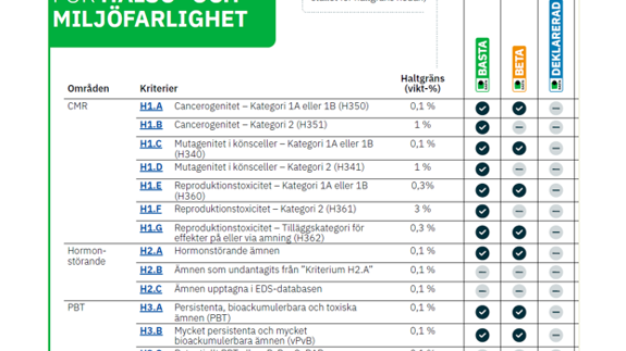 Kriterierna för betygsnivåerna BASTA, BETA och DEKLARERAD, information från olika hjälpdokument samt de valfria kriterieområdena ingår nu i samma dokument.