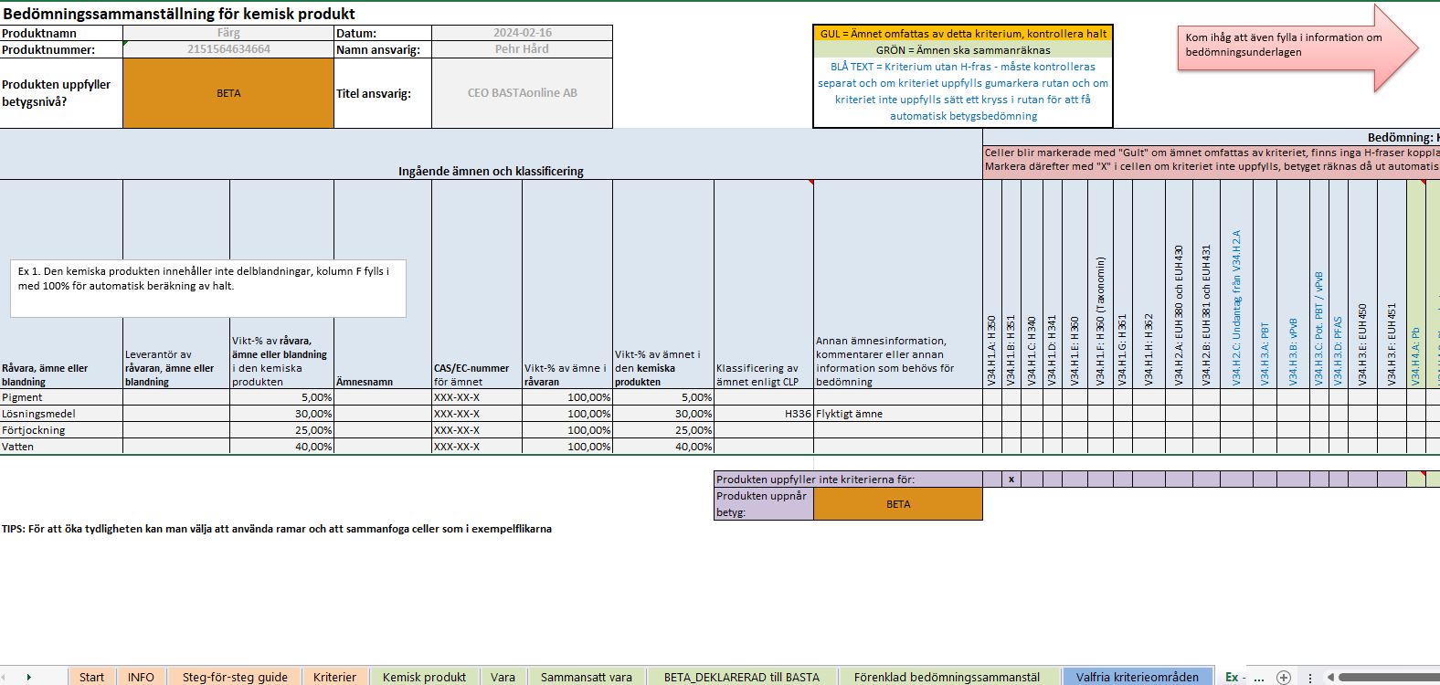 - En ny flik för smidig dokumentation vid förändringar av kemiska produkter, exempelvis från BETA till BASTA och DEKLARERAD till BASTA