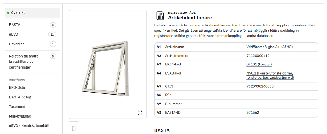 Sökfunktionen har fått tydligare och fler filter kopplade till valfria kriterieområden, cirkularitet, förnybarhet, miljöeffekter - EPD samt emissioner och tester. Detta i syfte att förenkla sökningen efter artiklar som har en viss typ av information.